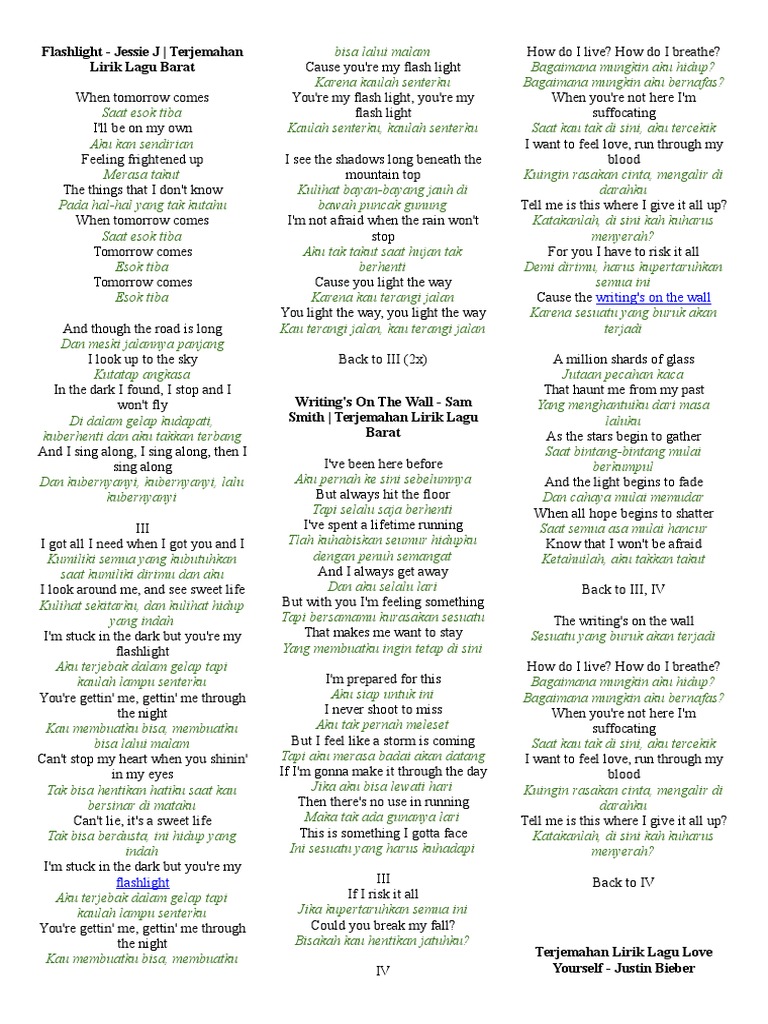 I’ll be on my own. And though the road is long i look up to the sky in the dark i found, i stop and i won’t fly and i sing along, i sing along, then i sing along. Dimana kegelapan sering melambangkan ketakutan. The things that i don’t know. Lagu yang dibawakan oleh penyanyi asal inggris ini tentang senter yang menerangi kegelapan. Lagu ini termasuk dalam album terbarunya pitch perfect 2 (original motion picture soundtrack). I'll be on my own. I got all i need when i got you and i. Diposting oleh unknown di 21.37 tidak ada komentar: Koleksi lengkap lirik lagu jessie j hanya ada di lirikbagus