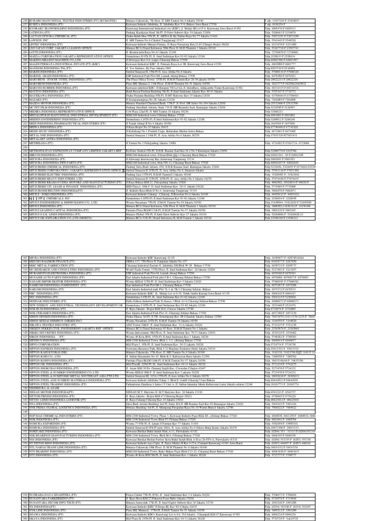 Daftar Perusahaan Jepang Di Jakarta. Bekas perusahaan, termasuk yang telah diakuisisi dan bergabung. Namun, kontraktor terbesar yang tercantum di atas dipilih karena diketahui dan sangat familer oleh masyarakat indonesia, terutama masyarakat yang bekerja dalam bidang konstruksi. Streetdirectory.co.id jakarta business finder membantu pengguna untuk mencari perusahaan yang ada di jakarta atau menemukan produk dan jasa yang ada di jakarta. Daftar perusahaan bei migas farmasi konstruksi pertambangan perbankan properti asuransi jiwa asuransi umum bumn jakarta pusat daftar perusahaan jakarta pusat, alamat perusahaan jakarta pusat, nomor telepon perusahaan jakarta pusat, direktori bisnis jakarta pusat Pt agung sedayu propertindo, grup usaha properti. Diskusi terbatas menteri ketenagakerjaan, ida fauziyah, dengan pengurus the jakarta japan club (jjc) yakni kyogi ueda (panasonic), masamichi tanaka (toyota), dan yoshihiro kobi (befa), di kantor kemnaker, jakarta, kamis (12/3/2020). Ada sekitar 99 list perusahaan yang terdaftar, mulai dari perusahaan besar yang memiliki pabrik sampai ke. Harco mangga dua, kelapa gading square, dharmawangsa square, golden fatmawati, taman palem lestari, dll. Ada perusahaan yang sedang membuka kesempatan lowongan kerja perusahaan jepang, fotografer, staf sales, guru bahasa jepang dan banyak lagi melalui indeed.com. Raya pasar minggu km 18 no.17, jakarta selatan,12510”. Daftar perusahaan jepang di indonesia Apabila anda adalah perusahaan yang menjual makanan jepang , segera daftarkan perusahaan anda di indotrading.com disini Pt toarco jaya didirikan dari perusahaan patungan antara indonesia (p.t. Itulah 10 perusahaan konstruksi terbesar dan terbaik di indonesia. Perusahaan konstruksi terbesar lainnya tentu masih banyak dan bahkan muncul dalam daftar saham bei.