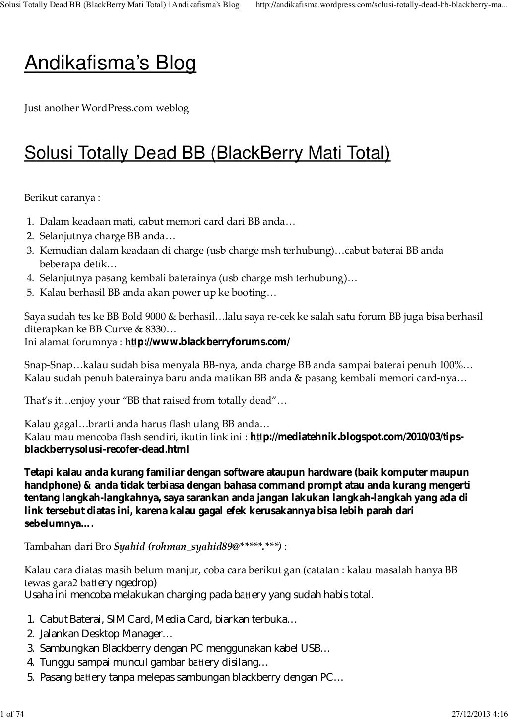 Karena kerusakan mati total bisa disebabkan oleh beberapa kerusakan yang berbeda, dan. Bb davis matot, solusi bb davis 9220 matot (mati total) pages. Solusi bb davis 9220 matot solusi bb davis 9220 tiba2 matot diposting oleh unknown di 05.58. Telah terjual lebih dari 1. Apabila tifak bisa coba dengan cara mem. Solusi bb matot sidole 10:43. Posting lebih baru posting lama beranda. Blackberry curve davis / bb 9220 second mati total (matot). 6 solusi bb davis 9220 matot sebenarnya sudah banyak sekali cara untuk mengatasi kerusakan mati total pada smartphone blackberry tipe ini.