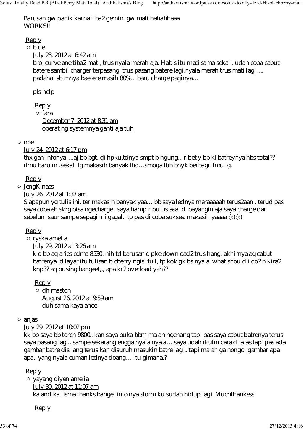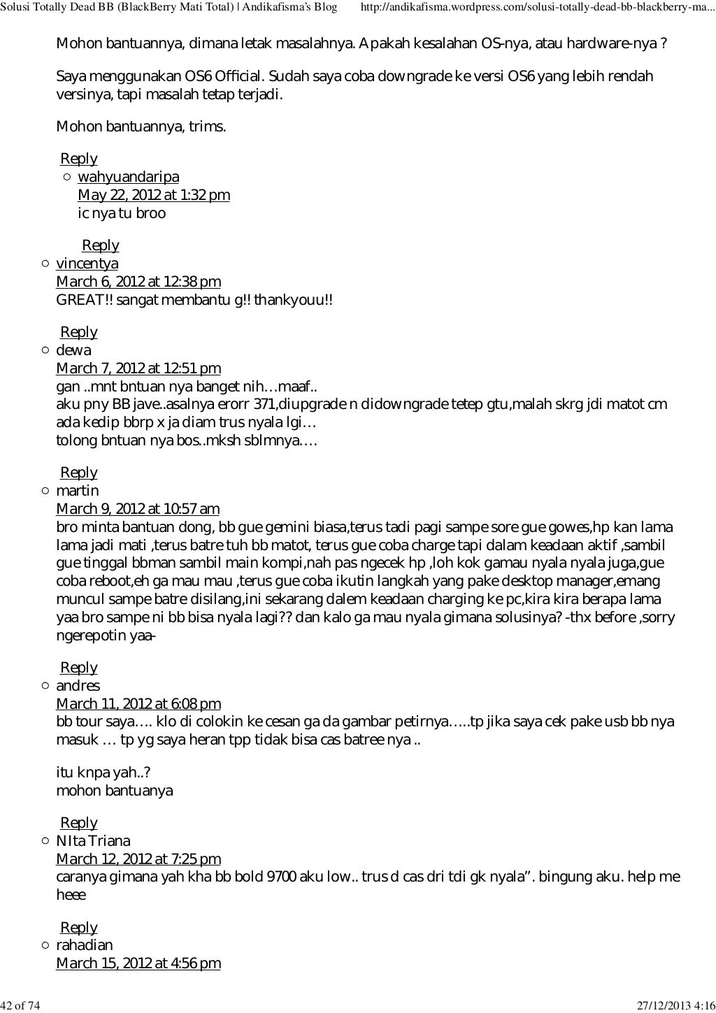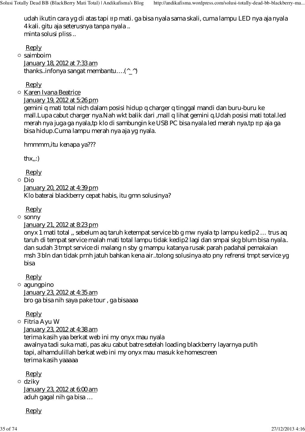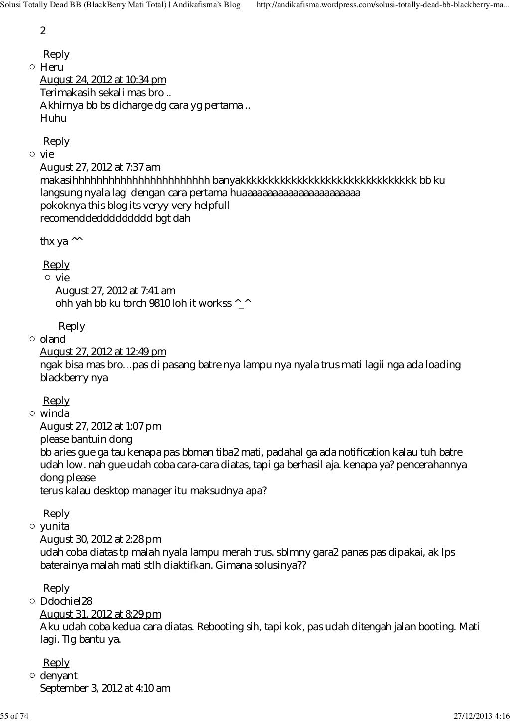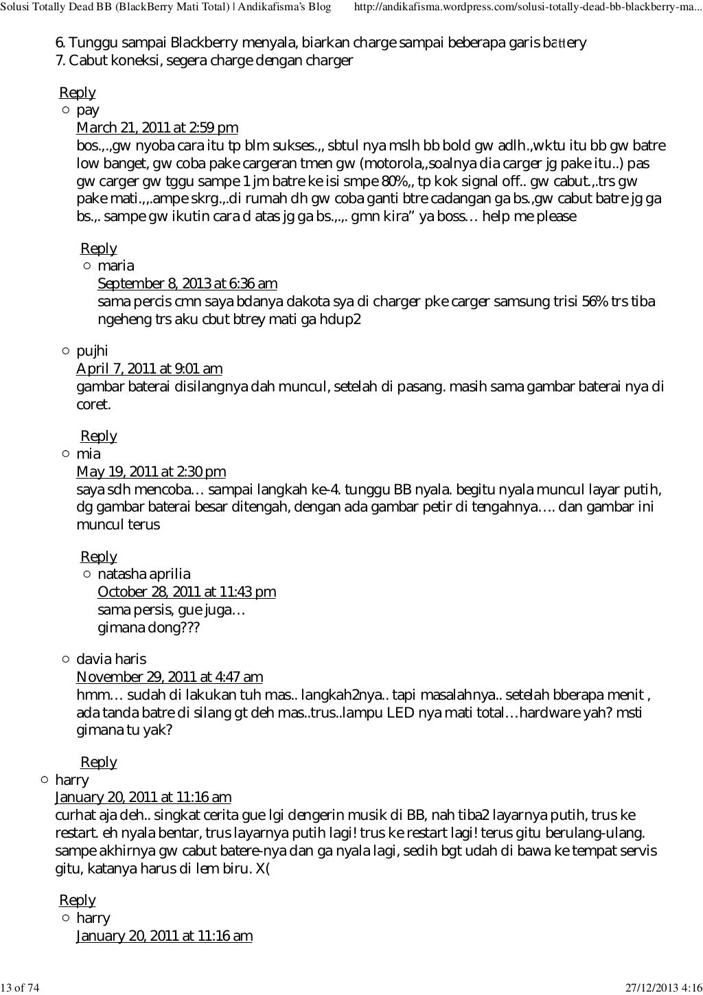 Lanjut aja ini dia solusi nya: September 6, 2016 suneppramuja28 tinggalkan komentar. Kirimkan ini lewat email blogthis! 6 solusi bb davis 9220 matot 6. Ada yg bisa ngasih solusi nya gan?? Demikianlah postingan saya kali ini tentang memperbaiki atau solusi bb davis 9220 matot (mati total). Jika blackberry sobatt sedang trouble, mungkin beberapa langkah pengerjaan dibawah ini bisa membantu cara mengatasi blackberry mati total (matot) dan nuked!!: Bagi teman teman yang mengalami hal yang sama yaitu nokia 105 king ta 1203 / 1174 matot atau putus jalur lcd , bisa tonton. Solusi perbaikan asus zenfone 5 sim card error;