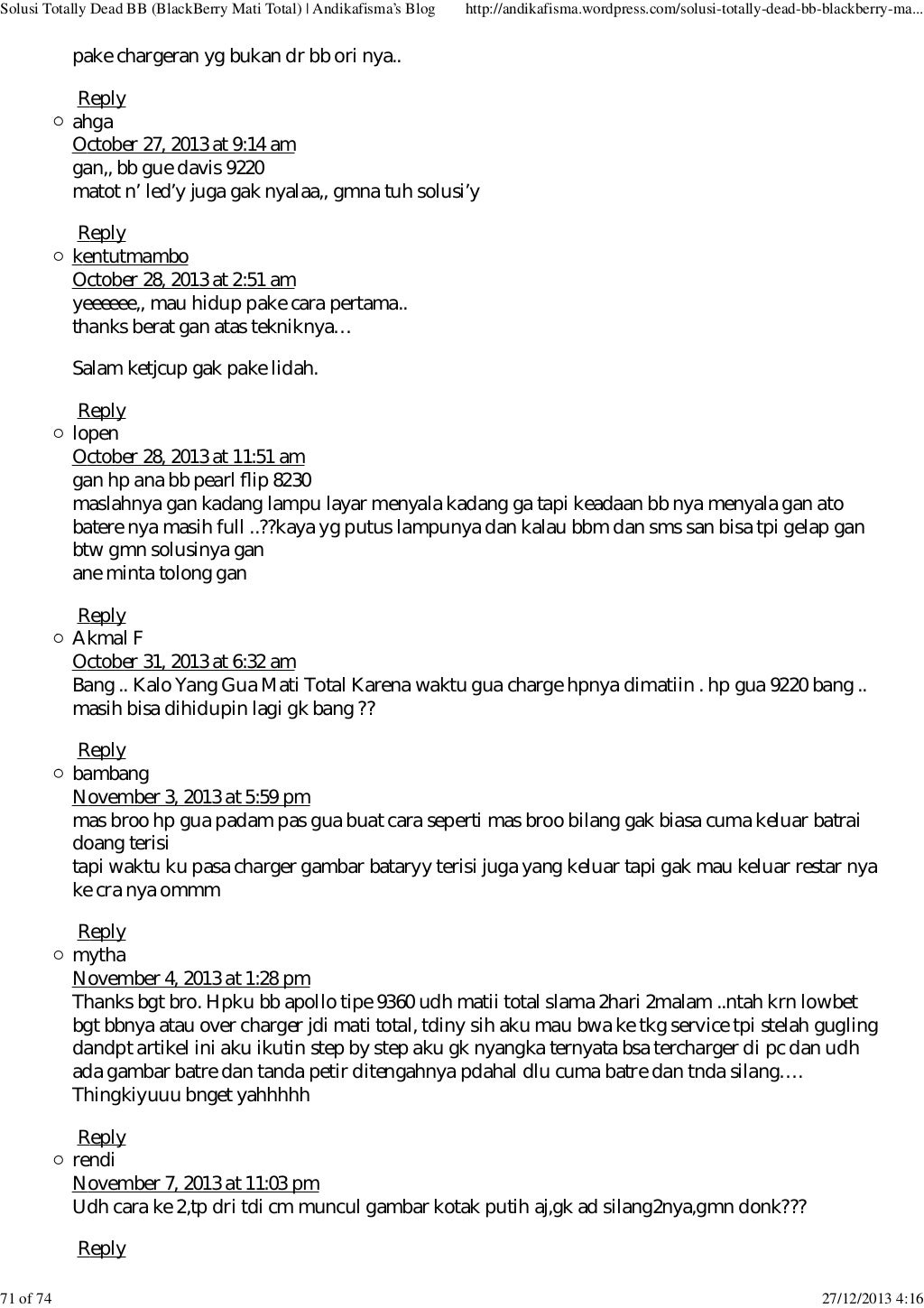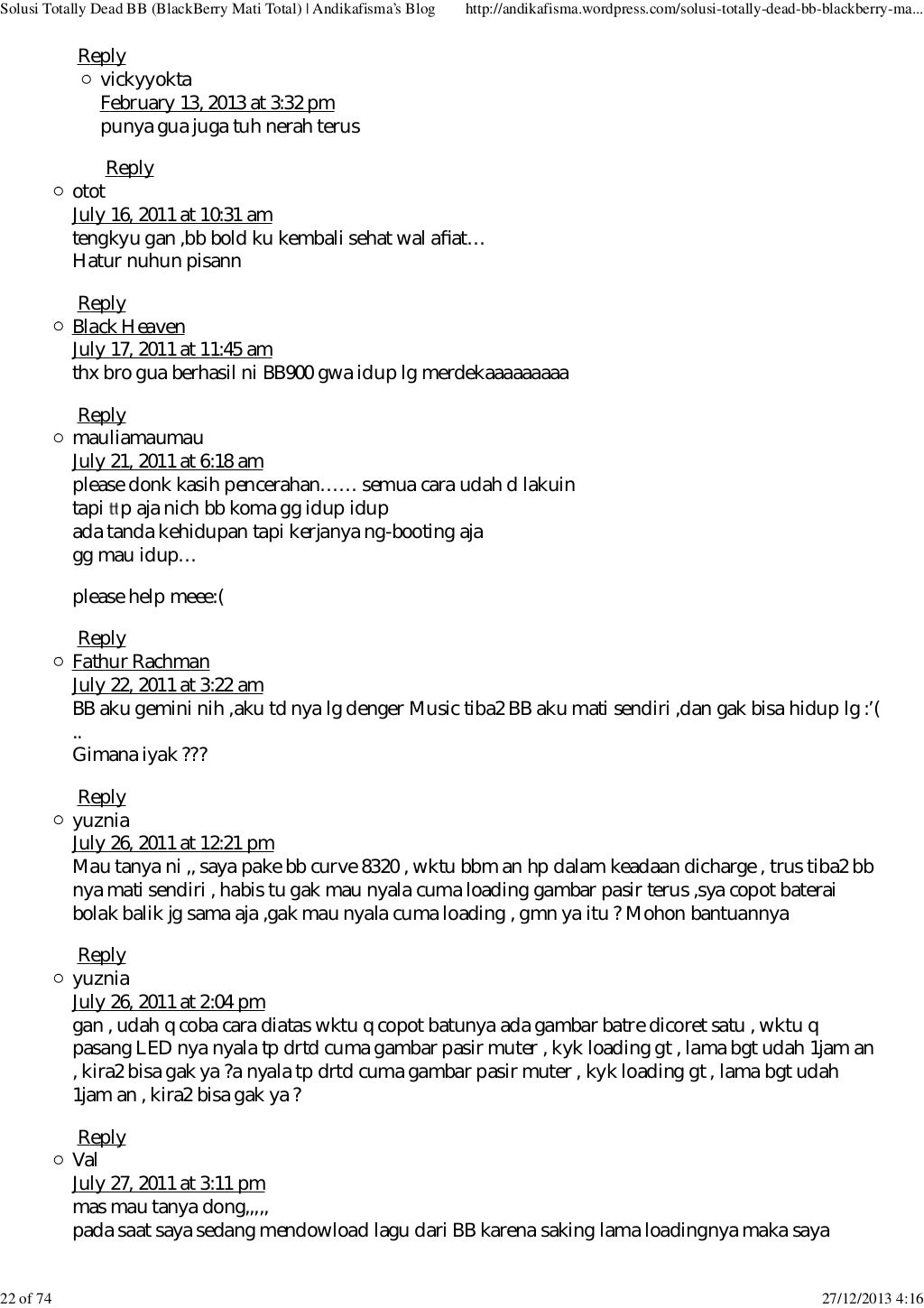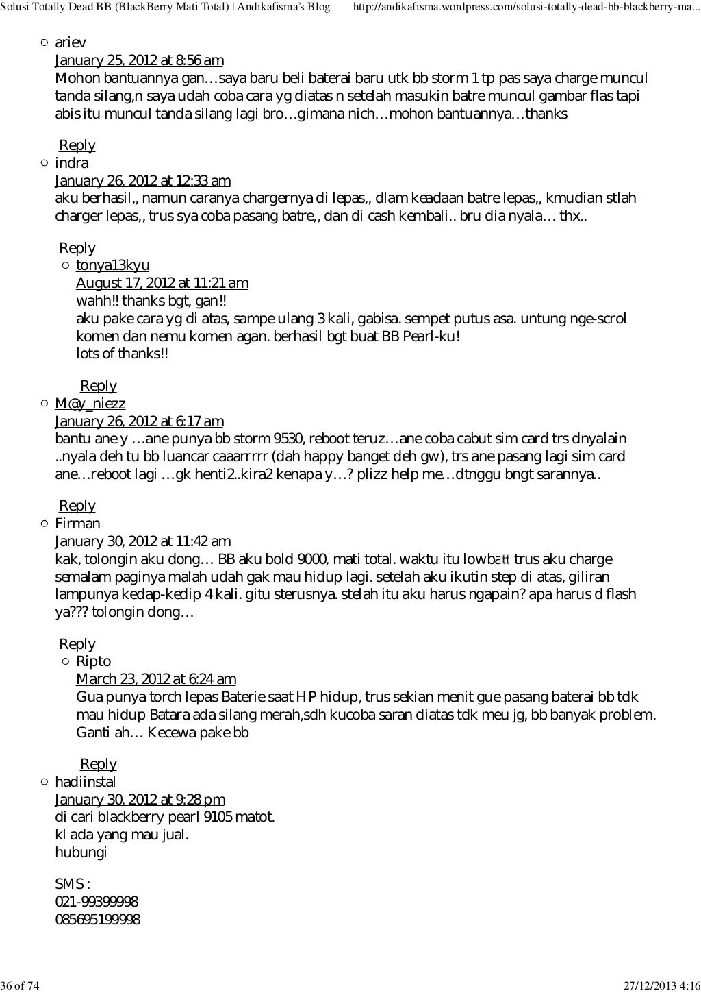 Solusi bb matot sidole 10:43. Solusi perbaikan asus zenfone 4 konslet; Cara mengatasi blackberry mati total (matot) dan nuked!! Posting lebih baru posting lama beranda. Solusi perbaikan bb q10 matot; 000jual bb 9360 matot kanibalan nego. Solusi mudah menambah ram di hp android; 6 solusi bb davis 9220 matot 6. Solusi bb davis 9220 matot solusi bb davis 9220 tiba2 matot diposting oleh unknown di 05.58. Website hendrixdmx adalah web yang memberikan anda pengetahuan dan permasalahan tentang solusi service kerusakan phonsel anda antara lain tips & trik handphone | tips service hp | trik service hp | skema hp | trik jumper | aplikasi hp.